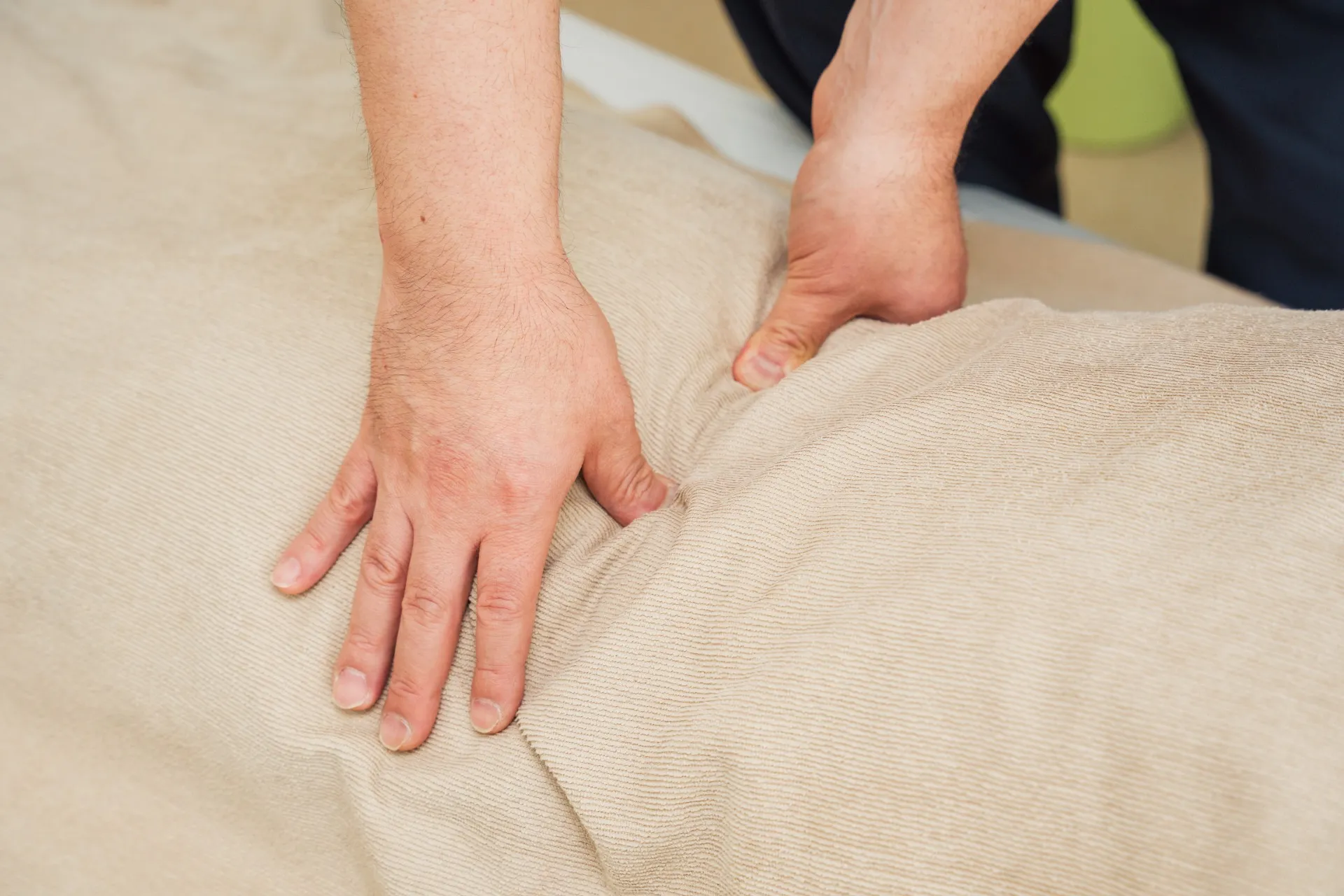 - 動きやすい服装でお越しいただくのがおすすめです。スカートや硬い素材の服装の場合、施術がしにくい場合があります。